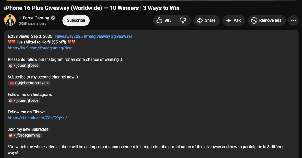Running a giveaway is one of the fastest ways to boost engagement, reach new viewers, and build community on your YouTube channel.