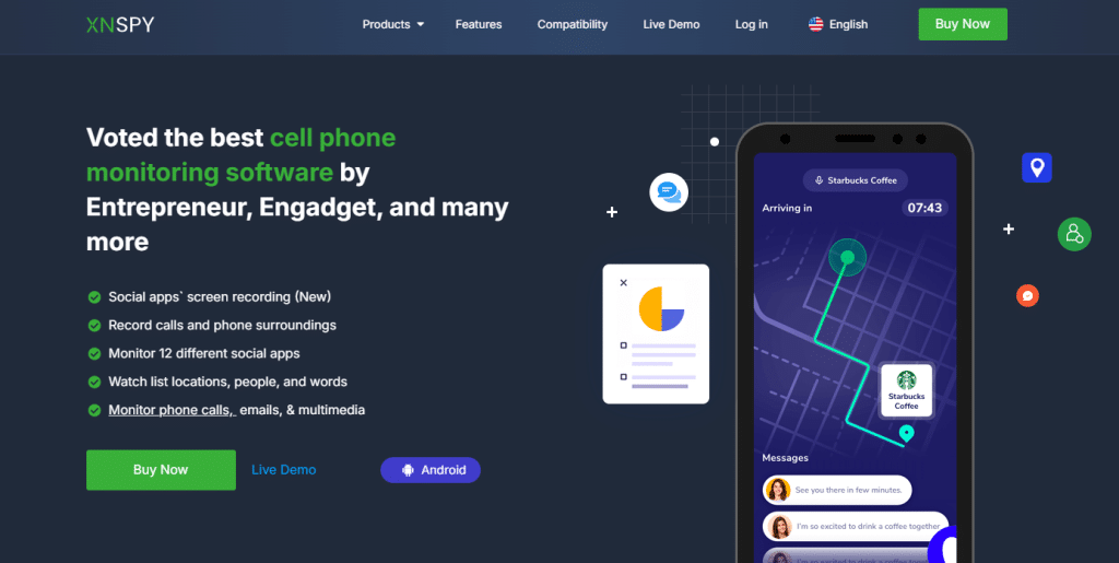 XNSPY positions itself as an advanced mobile tracking tool with deeper control features. It supports SMS logs, call records, multimedia access, browser history, and extensive social media spying coverage.